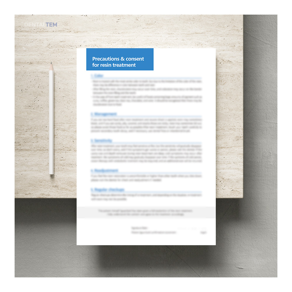 레진 치료 시 주의사항 및 동의서 (영문) 요약정보 및 구매